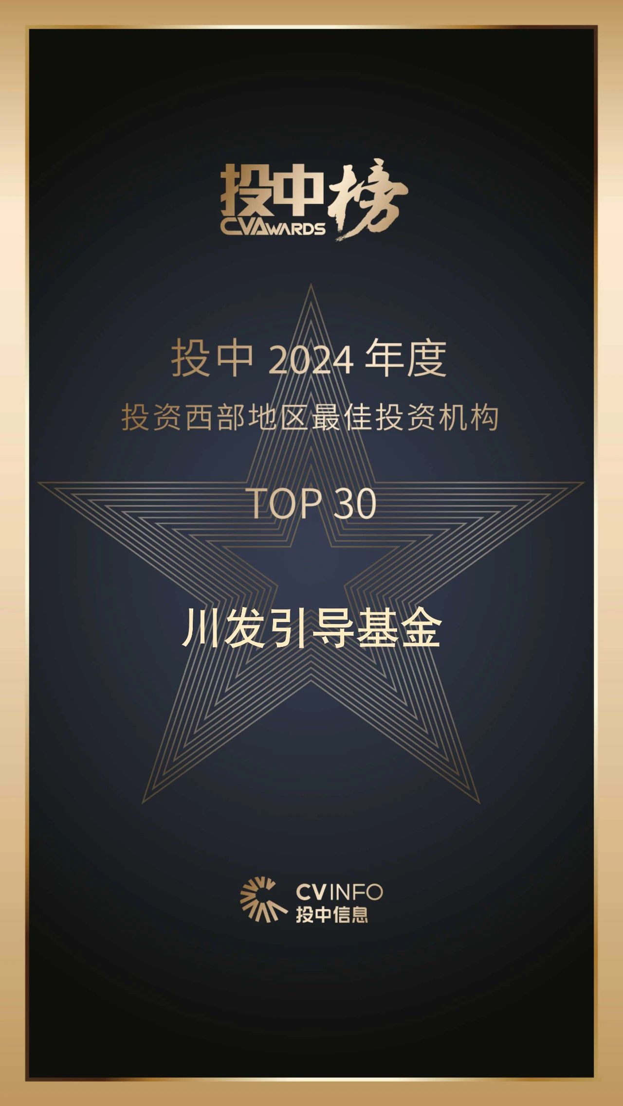 榮譽 | 川發引導基金蟬聯“投中榜·2024年度投資西部地區最佳投資機構Top30”獎項