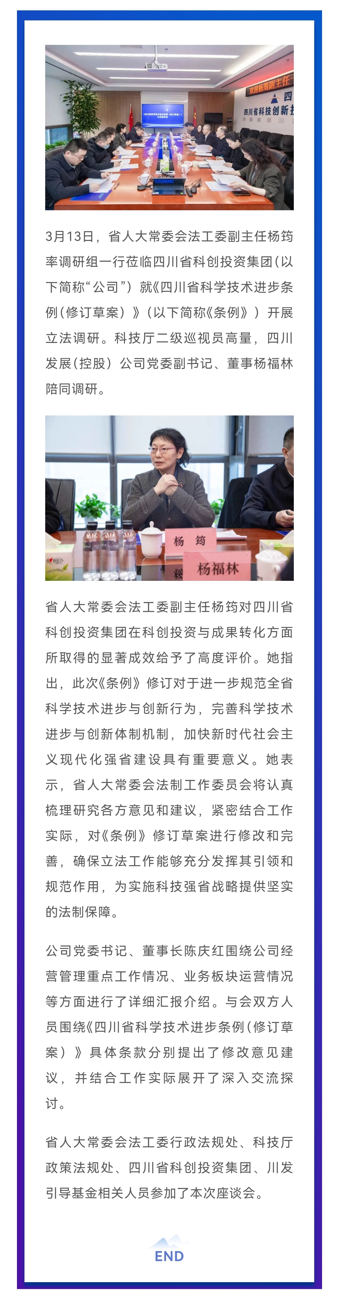 公司新聞丨省人大常委會法工委副主任楊筠一行蒞臨四川省科創投資集團開展立法調研