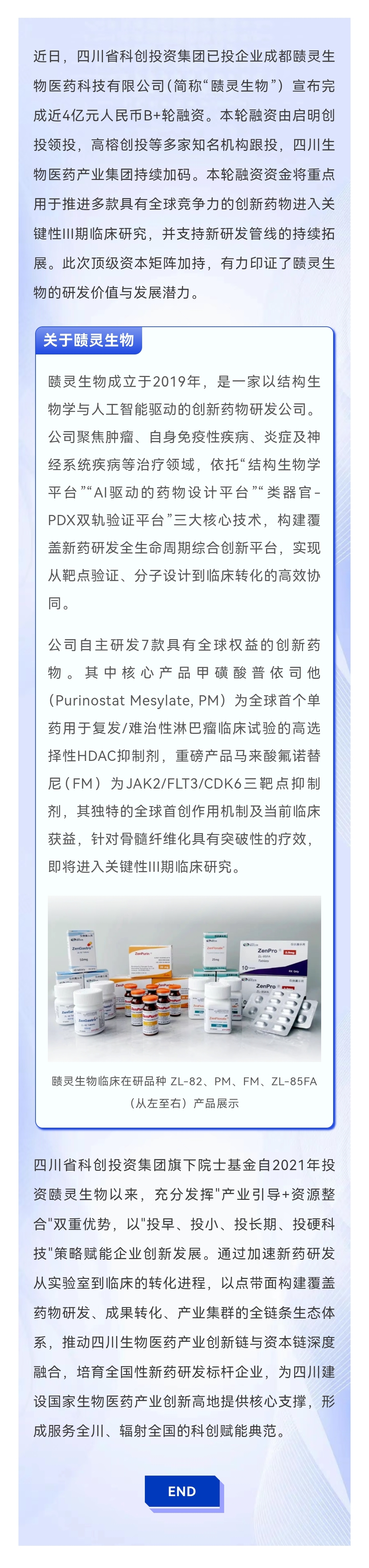已投企業動態 | 賾靈生物完成近4億元B+輪融資,創新藥研發賽道再添動能